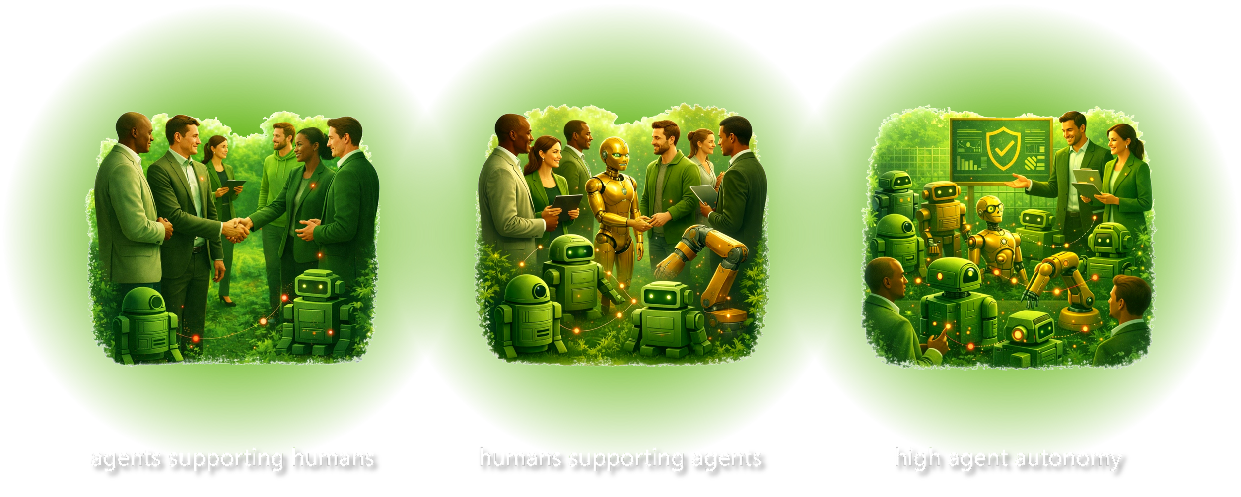 In reality, organizations won’t move to “fully autonomous” overnight. Execution evolves across three modes that will coexist: